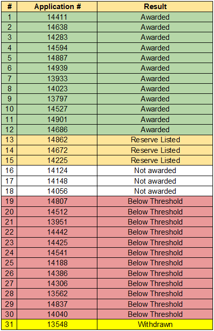 The final funding decisions have been approved and are published below using application numbers only, in accordance with the General Data Protection Regulation (GDPR).